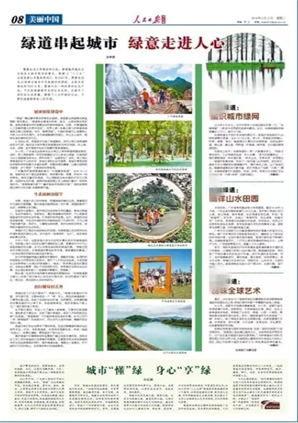 近日,人民日报海外版刊发了题为《绿道串起城市 绿意走进人心》专版,其中谈到21世纪以来,我国逐步兴起了绿道建设,其中以珠三角绿道网体系为代表,广东肇庆环星湖绿道被誉为“中国最美绿道”,连接市区多个著名旅游景点,具有集环湖、观景、休闲为一体的特色。(摘自5月15日人民日报海外版)