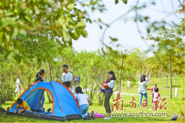 国庆假期,不少游客到麻涌镇华阳湖休闲娱乐。南方日报记者 孙俊杰 摄