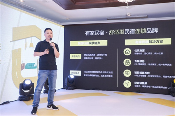 发布会上,申志强详细阐述了“新民宿”概念。首先,新民宿要品牌连锁化。目前制约短租民宿行业发展的关键因素是,房客端缺乏优质房源,选择成本高且服务不标准,随机性大;房东端欠缺系统化管理能力及标准化流程无法形成规模效应,成本高效率低。有家民宿采用“品牌连锁”的管理运营模式进行解决,即精选物业,匠心设计、统一软装,保障优质房源;24H管家服务,专业保洁,统一布草洗涤,堪比五星服务;提供智能管理系统,一键发布管理,科学智能定价,经营状态可视;硬软装集采,与施工、家具家电一线品牌集采合作,降低投入。
