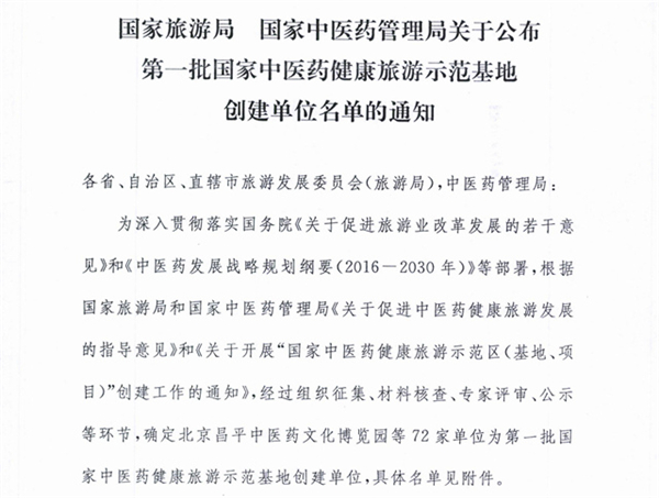 据了解,为深入贯彻落实国务院《关于促进旅游业改革发展的若干意见》和《中医药发展战略规划纲要(2016—2030年)》等部署,根据国家旅游局和国家中医药管理局《关于促进中医药健康旅游发展的指导意见》和《关于开展“国家中医药健康旅游示范区(基地、项目)”创建工作的通知》,经过组织征集、材料核查、专家评审等环节,确定72家单位为第一批国家中医药健康旅游示范基地创建单位。其中,我省共有两家单位上榜,分别是广州神农草堂中医药博物馆和惠州罗浮山风景名胜区。